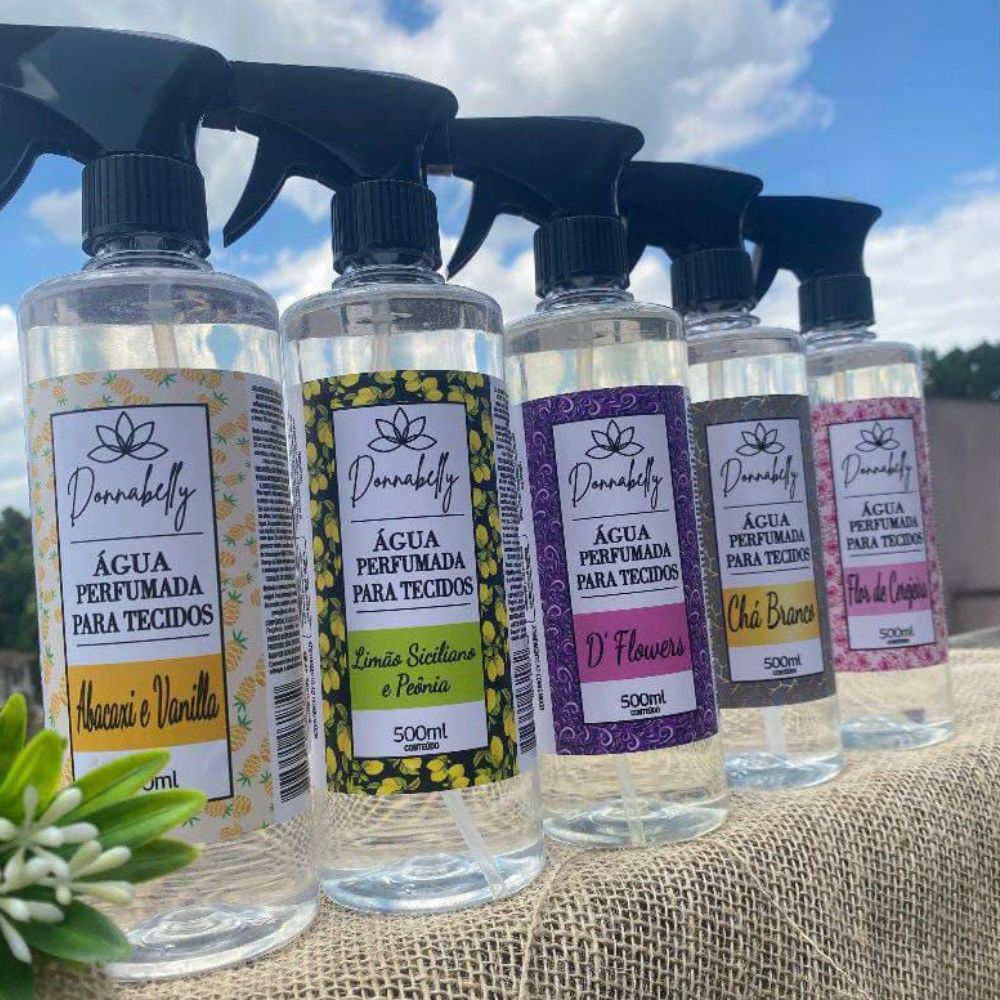 Que tal experimentar a Água Perfumada para Tecidos nos aromas de Chá Branco, Abacaxi e Vanilla, D'Flowers e Flor de Cerejeira?
