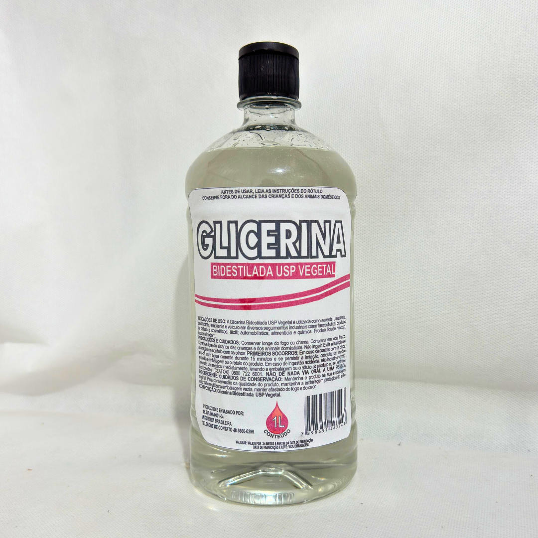 Base Glicerinada Bidestilada USP Vegetal 1L- solvente, umectante, plastificante, emoliente e veículo