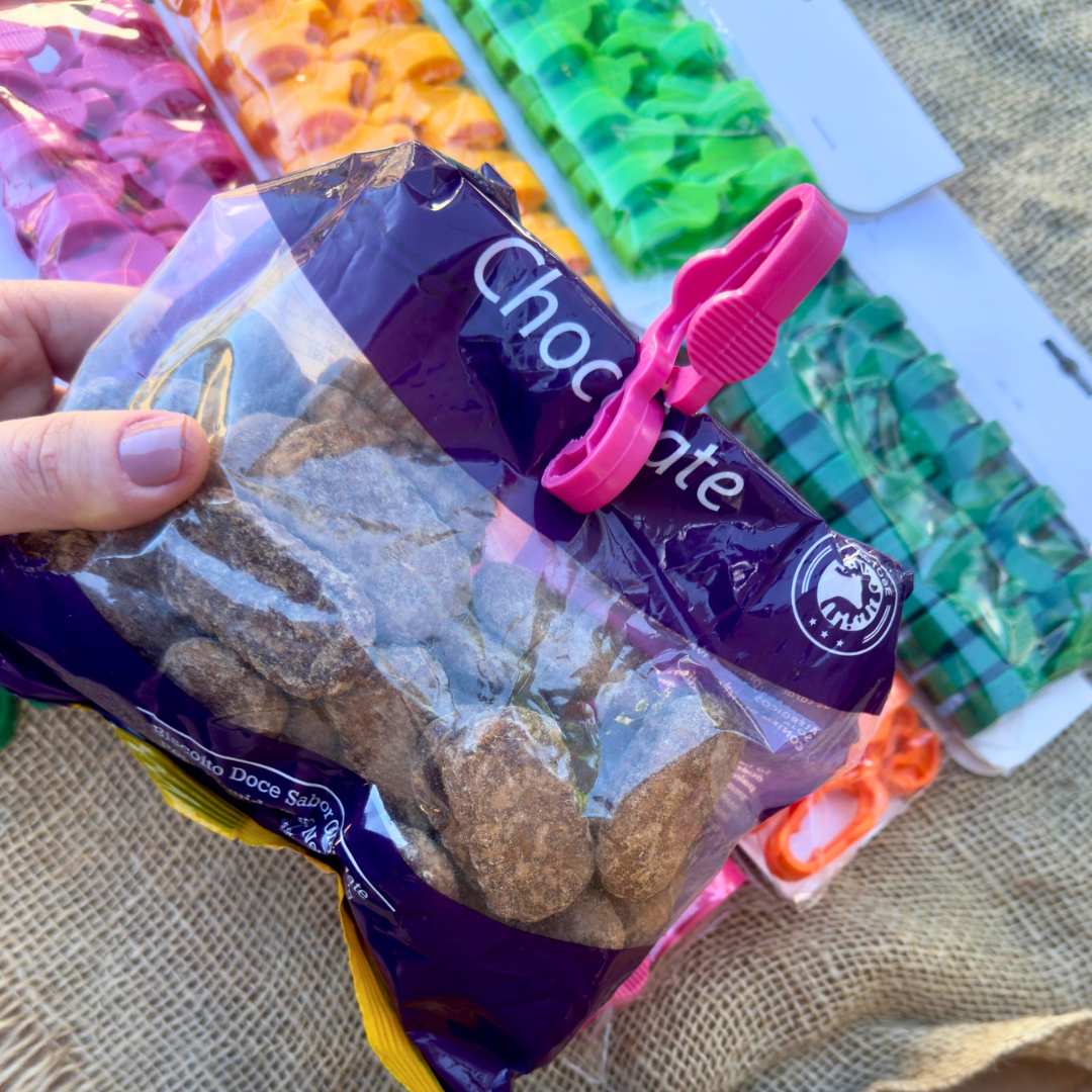 Sem partes metálicas, elimina o risco de ferrugem, garantindo maior segurança e durabilidade, mesmo em ambientes úmidos. Além disso, sua versatilidade permite que seja usado como um prendedor eficiente para lacrar sacolas e embalagens de alimentos, mantendo tudo bem fechado e fresco.