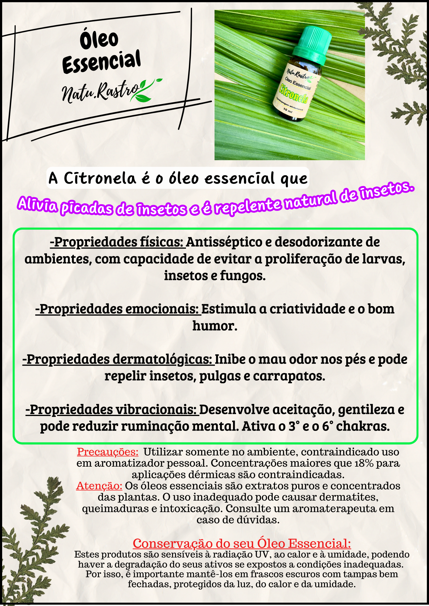 Composição: Óleo Essencial de Citronela
