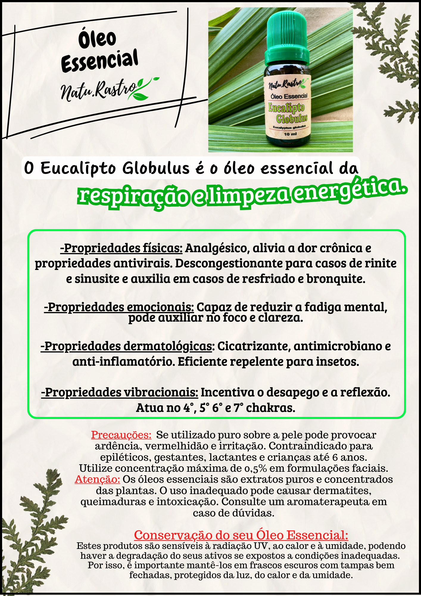 Óleo Essencial de Eucalipto Globulus Natu.Rastro 10ml