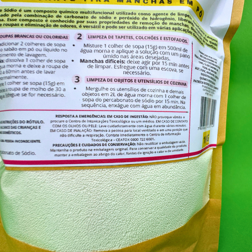 • Produto biodegradável: Se decompõe em carbonato de sódio, água e oxigênio, não poluindo o meio ambiente.